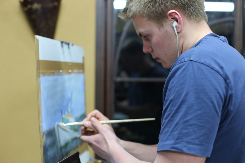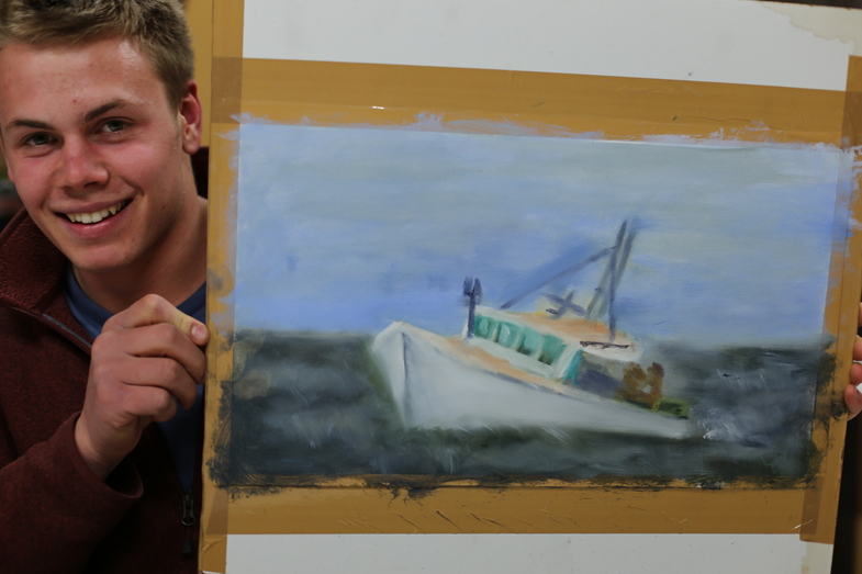 Calvin loves to oil paint experiences that he’s had in Maine.