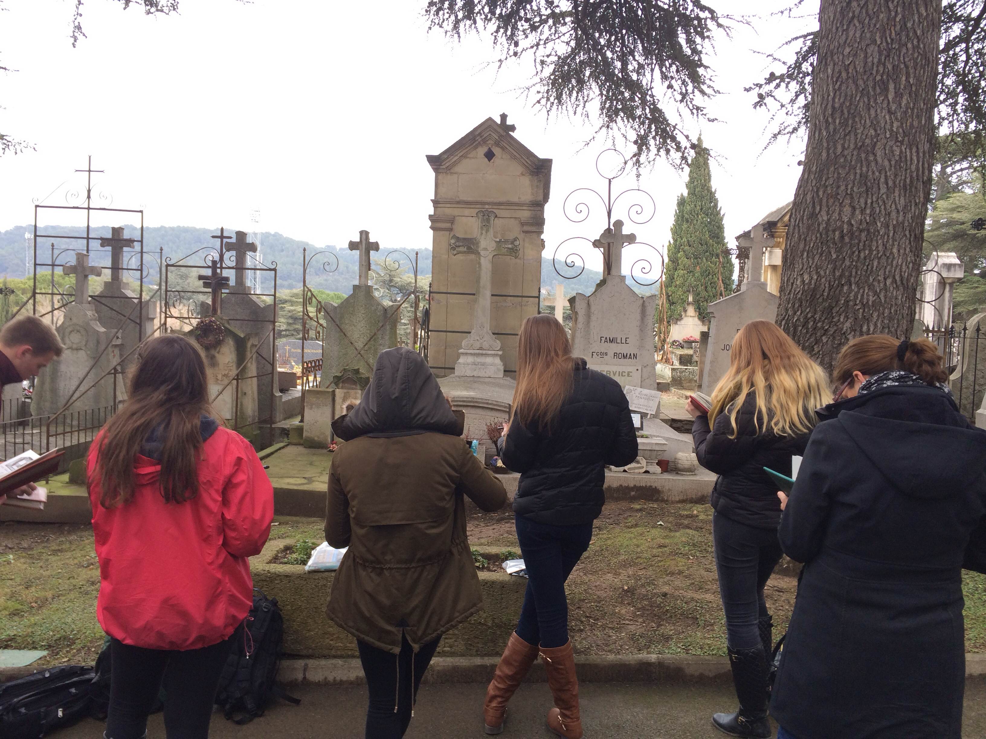 On Thursday we explored the life of Paul Cézanne. We saw his house nestled on the outer parts of Aix. As we squeezed through the city in our van Jumpy, Dave pointed out the significance of places that we walk by every day. Along Cours Mirabeau is Cézanne’s father’s hat store. Just up the way is the church that he was baptized in, and the house that he was born in. Many of us had walked by these sites countless times but had no idea their significance.